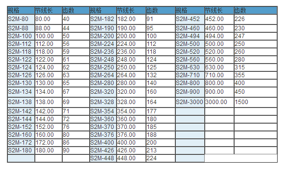 同步帶技術參數
