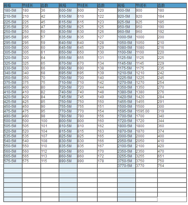 同步帶技術(shù)參數(shù)