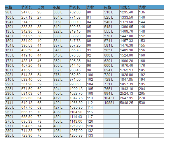 同步帶技術(shù)參數(shù)